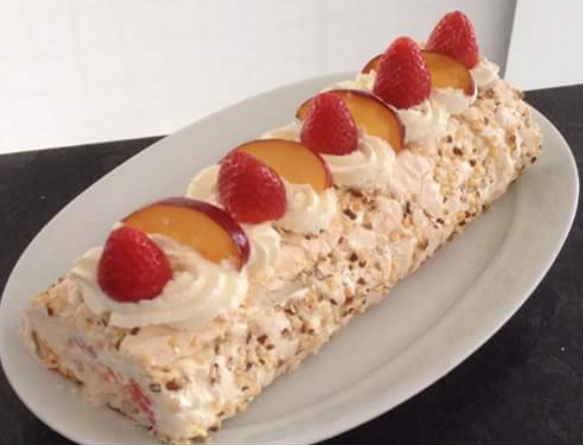 Marängrulle med jordgubbar och nektariner